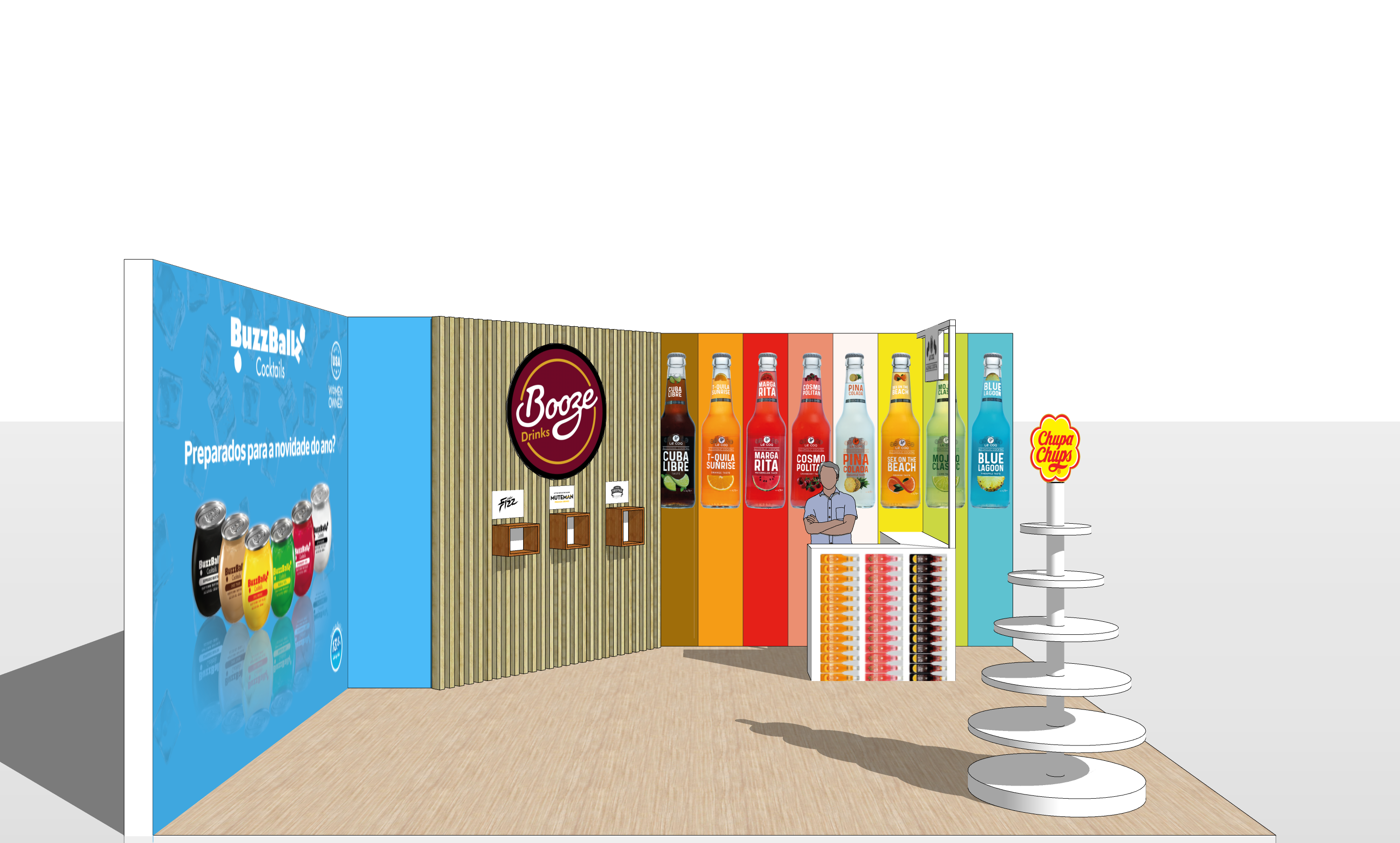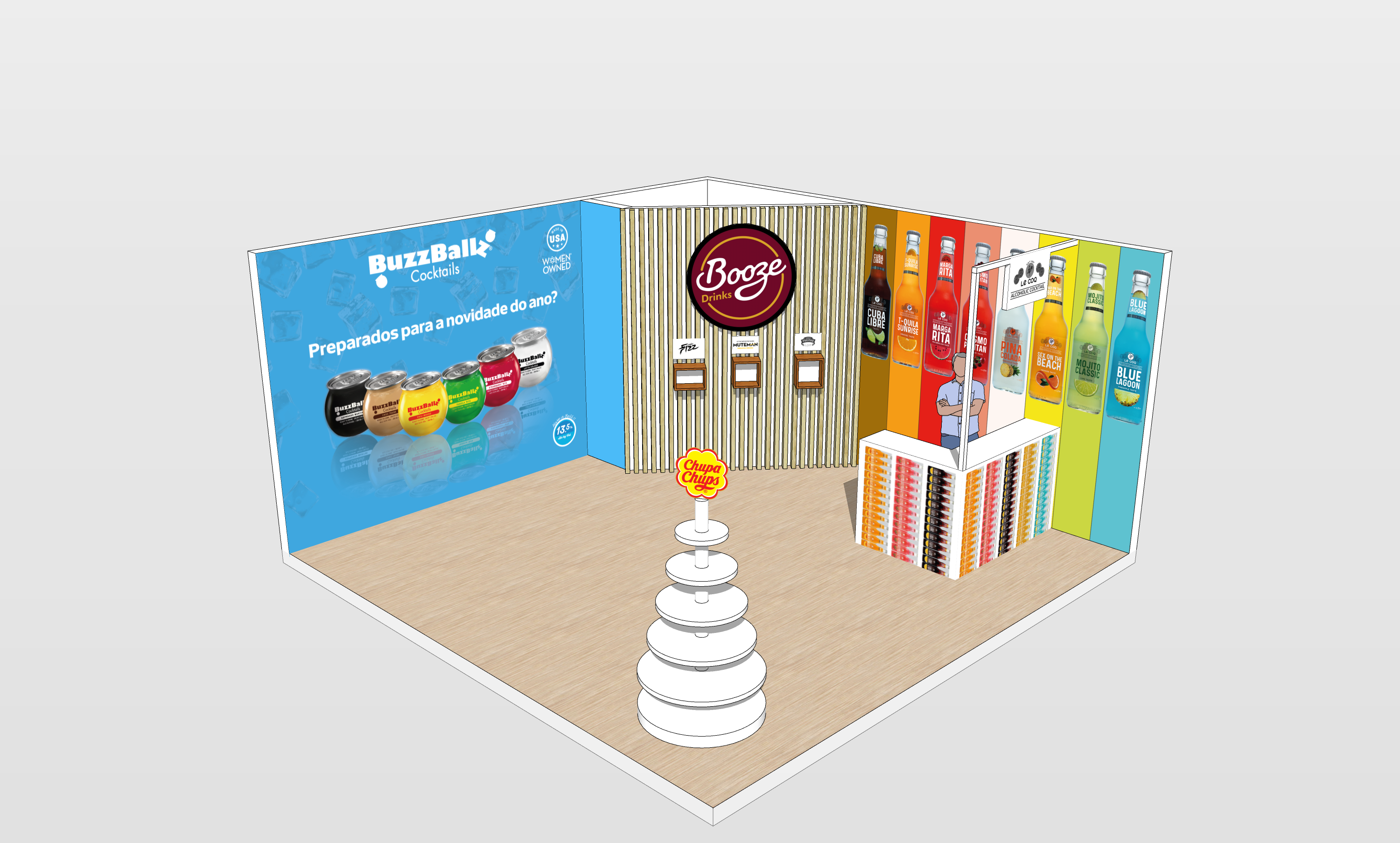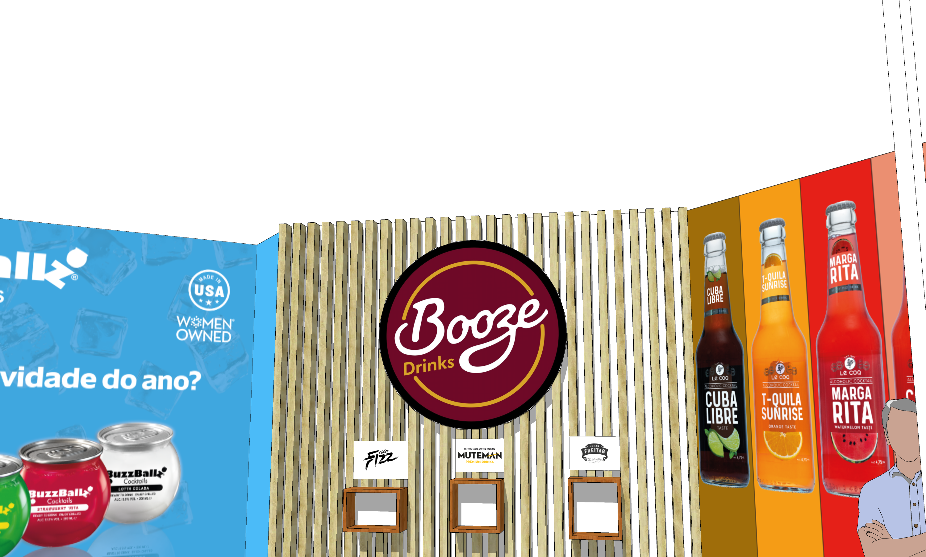 Project to create a promotional stand, for presence at the Lisbon Food Affair 2023, for the BoozeDrinks brand.