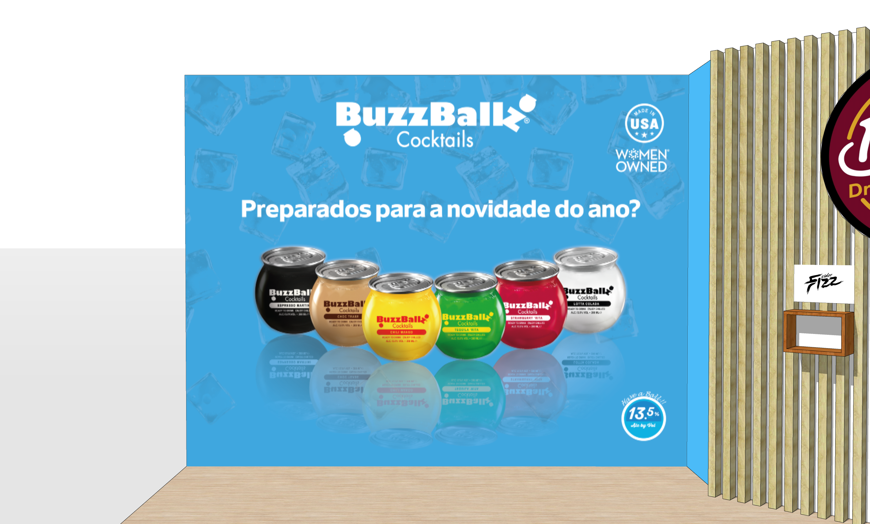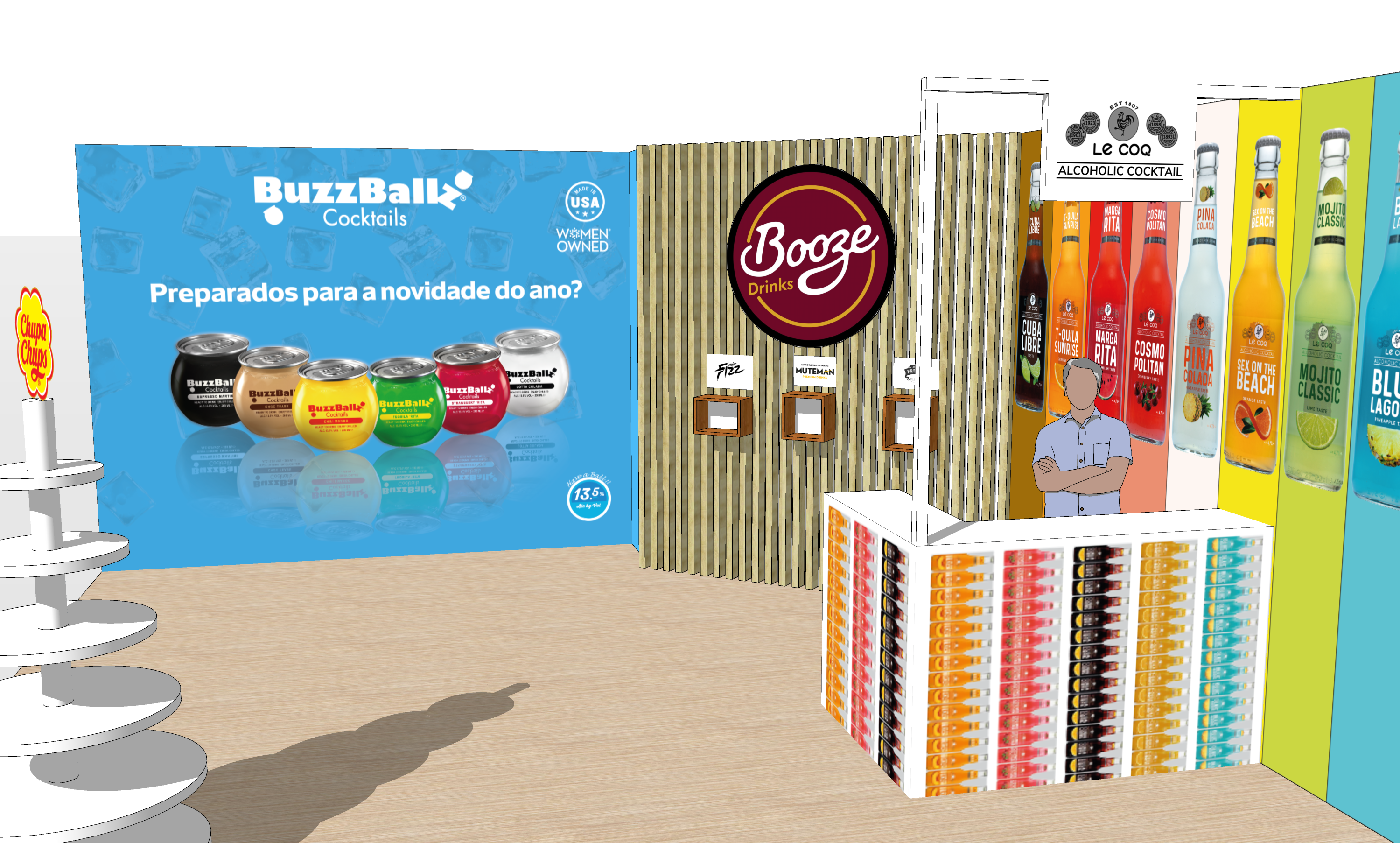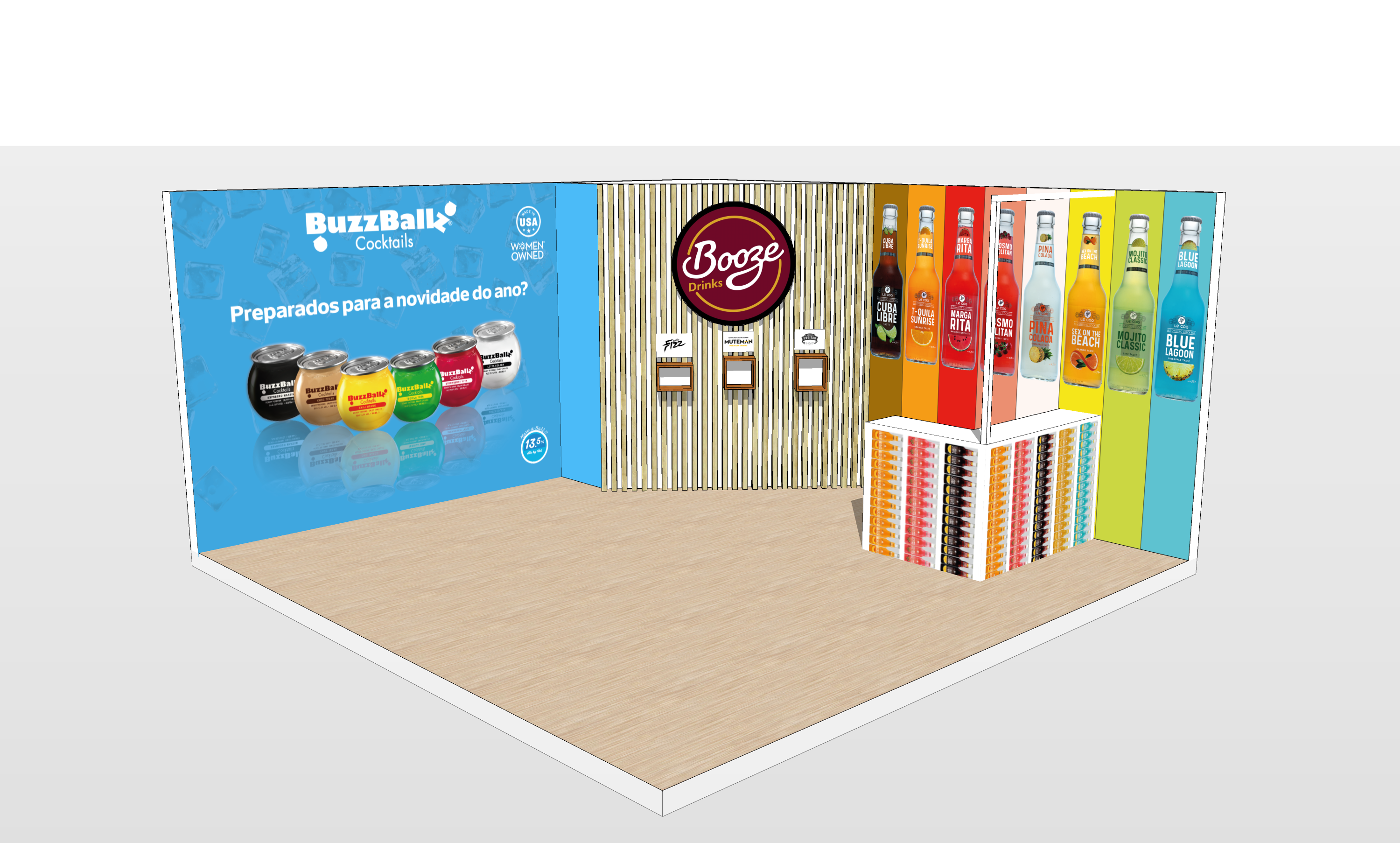 Project to create a promotional stand, for presence at the Lisbon Food Affair 2023, for the BoozeDrinks brand.